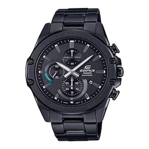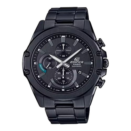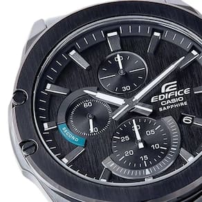 Série EDIFICE SLIM com Cristal de safira | Apesar de ser um cronógrafo com ponteiros, esse modelo tem uma caixa de 9,5 mm de espessura para um encaixe excelente. A coloração verde nos quatro parafusos que prendem a moldura de acabamento fino, nos ponteiros e nos índices cria um acabamento esportivo. Um mostrador com acabamento de fios de cabelo também cria uma sensação de alta qualidade. Usa um cristal de safira resistente a arranhões.