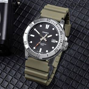 Compre seu Relógio CASIO Masculino MTP-VD01-3EVUDF Analógico Prata Mostrador Preto pulseira em Resina Verde na D’Lumian! As melhores marcas e preços estão aqui! Vamos conhece-lo mais ?