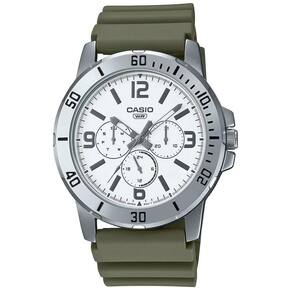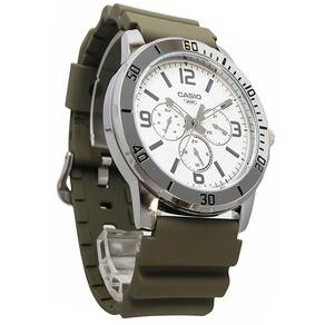 O Relógio Casio Masculino Standard Mtp-vd300-3budf é perfeito para homens que buscam estilo e funcionalidade. Com sua pulseira verde-musgo e bisel prateado, ele combina perfeitamente com qualquer look. Seu mostrador branco e marcadores de horas em numeração romana adicionam um toque de elegância.