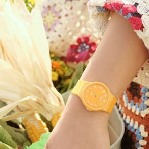 Opte por um estilo casual clássico com um relógio com ponteiros básicos das horas, minutos e segundos, um perfil elegante e um ajuste leve e confortável, apenas 20g. O design com ponteiros de horas, minutos e segundos apresenta números simples numa gama de esquemas de cores monocromáticos diferentes, tudo com um aspeto e toque elegantes e minimalistas. A bracelete é fabricada com resina biológica, um material que se espera contribuir para reduzir o impacto ambiental.