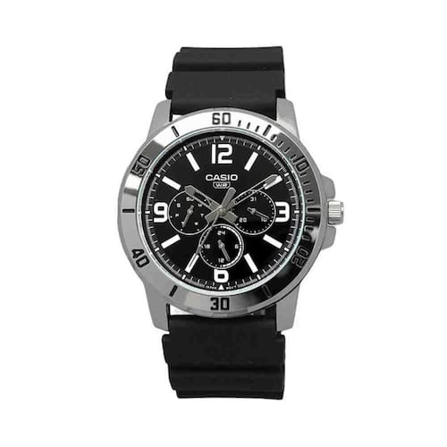 Relógio Casio Standart Prata Preto Masculino MTP-VD300-1BUDF-SCNa Elister, a qualidade é uma prioridade em todos os nossos produtos e serviços. Nós nos esforçamos para oferecer aos nossos clientes uma ampla variedade de acessórios, incluindo relógios e óculos de sol, com as melhores marcas e estilos. Além disso, a nossa equipe é treinada para oferecer um atendimento excepcional, garantindo que cada cliente seja tratado com o respeito e a atenção que merece.ESPECIFICAÇÕES TÉCNICAS- Marca: Casio- Linha: Standard- Referência: MTP-VD300-1BUDF-SC- Gênero: Masculino - Tipo de mostrador: Analógico- Tipo de movimento: Quartz- Função: Calendário Duplo, Formato 12/24hs - Tipo de fecho: Fivela de aço inox- Cor da caixa: Prata - Cor do mostrador: Preto- Cor da pulseira: Preto- Material da caixa: Aço Inox- Material da pulseira: Borracha- Largura da caixa: 4,6 cm- Espessura da caixa: 0,8 cm- Resistência à água: 3 ATM 30 m - : 12 meses Ean: 4549526348808