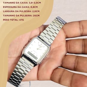 O clássico que nunca sai de moda! Com design retrô e recursos modernos, este relógio oferece cronômetro, alarme e hora dupla em um estilo casual e resistente à água. Ideal para quem busca funcionalidade e elegância em um único acessório!