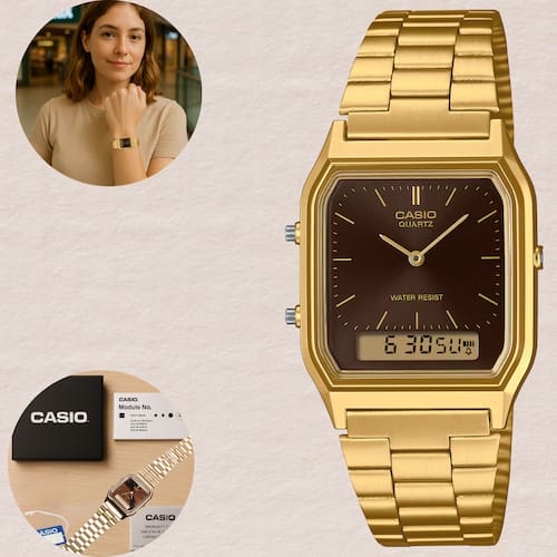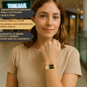 Inspirado no charme retrô com toques modernos, este relógio une elegância clássica e praticidade digital em um único acessório. A caixa em tom dourado metálico, combinada à pulseira de aço inox com acabamento banhado a ouro, valoriza o visual com sofisticação. O mostrador marrom sunray com janela digital discreta proporciona leitura fácil e funcionalidade extra para o dia a dia. Ideal para quem busca estilo sem abrir mão da versatilidade — perfeito para compromissos profissionais ou momentos casuais com elegância. Com resistência à água de 3 ATM, ele oferece segurança e confiança em qualquer ambiente.