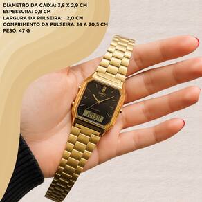 Relógio Casio Unissex AQ-230GA Dourado Anadigi Digital Analógico Casual Quadrado Aço Inóx Social Classico Vintage Resistente Água 3ATM