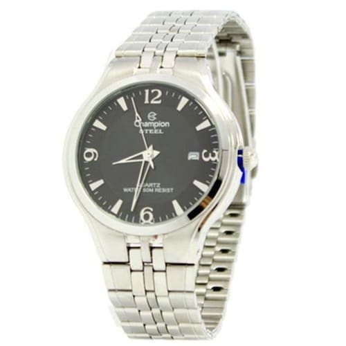 Vamos conhecer um pouco mais sobre o produto Possui mecanismo analógico, a pulseira é na cor prata, fabricada em aço inoxidável, e possui fecho de pressão. A caixa (peça onde fica o mostrador) é fabricada em aço inoxidável cor prata, mede 4 cm de diâmetro, o que é tamanho médio. O relógio analógico social champion ca20527t, é fabricado por magnum indústria da amazônia sa. Dados técnicos: Caixa: aço Pulseira: aço Cor da caixa: prateado Tipo do mecanismo: com calendário Cor do mostrador: preto Prova d'agua Peso (gramas): 87