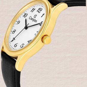 Relogio Champion CH22233M Feminino Pulseira Couro Preto Quartzo Resistente Agua 5 ATM Redondo Social Dourado