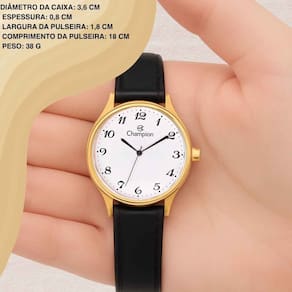 O Relógio Champion CH22233M é a escolha certa para mulheres que valorizam sofisticação e praticidade em cada detalhe. Sua caixa dourada em aço inoxidável combina perfeitamente com a pulseira em couro preto, criando um visual elegante e atemporal. O mostrador branco proporciona leitura rápida e clara, enquanto o movimento quartzo garante precisão absoluta. Resistente à água em até 50 metros, é ideal para uso diário sem abrir mão da elegância. Leve e confortável, esse modelo transita com estilo entre reuniões, compromissos casuais ou ocasiões especiais.
