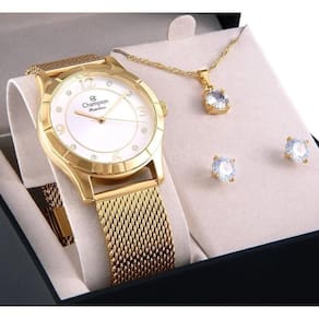 Relógio champion dourado feminino + colar e brincos cn29910w Relógio champion feminino dourado cn29910w acompanha colar e par de brincos folheados com cristais