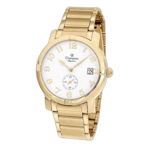 Relógio Champion Feminino Analógico CN24815H Dos clássicos aos modernos, designs inovadores, relógios que trazem personalidade e utilidade no seu dia a dia para quem busca conforto e durabilidade, nossos relógios casuais são ideais para quem busca funcionalidade. DESCRIÇÃO -marca: Champion-gênero: Feminino-tipo de mostrador: Analógico -material da caixa: Metal-cor da caixa: dourado-material da pulseira: Aço-cor da pulseira: dourado-tipo de pressão: Trava de pressão -resistência à água: 5ATM -garantia: 12 meses
