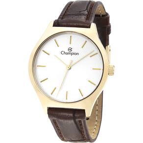 Características Formato do Relógio: Redondo Composição do Vidro: Cristal mineral Material da Caixa: Aço Inox Cor da Caixa: Dourado Cor do mostrador: Dourado, Prata Material da Pulseira: Couro Cor da Pulseira: Marrom Mecanismo: Analógico Quartz