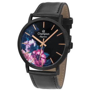 Características Formato do Relógio: Redondo Composição do Vidro: Cristal mineral Material da Caixa: Aço Inox Cor da Caixa: Preto Cor do mostrador: Estampado, Preto, Rosê Material da Pulseira: Couro Cor da Pulseira: Preto Mecanismo: Analógico Quartz