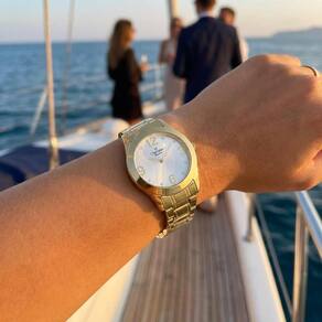 Marca: Champion Modelo: CH24268D Mecanismo: Analógico Material da caixa: Metal Material da pulseira: Aço Cor da caixa: Dourado Cor do mostrador: Prata Cor da pulseira: Dourado Formato da caixa: Redonda Fecho: Trava de pressão Gênero: Feminino Estilo: Social Resistência à água: 50 Metros Tipo de vidro: não informado Funções: Horas e minutos