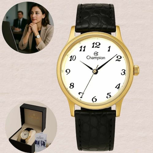 O Relógio Champion Feminino CN28008B é a escolha ideal para mulheres que buscam estilo e sofisticação em um só acessório. Sua caixa dourada em contraste com o mostrador branco transmite elegância atemporal, enquanto a pulseira em couro preto garante conforto e versatilidade para qualquer ocasião. Equipado com vidro de cristal mineral e movimento quartz analógico, oferece precisão e resistência. Com estanqueidade até 50 metros, acompanha você desde momentos casuais até eventos mais especiais, traduzindo charme e confiança em cada detalhe.
