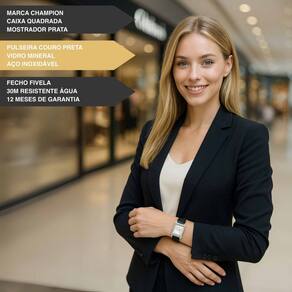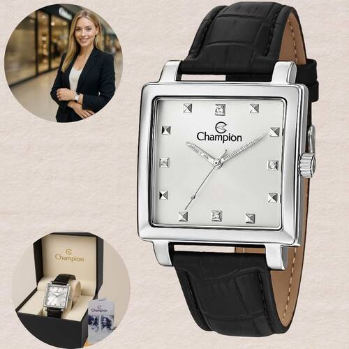 O Relógio Champion Feminino CN28106Q combina design sofisticado e praticidade para o dia a dia. Com caixa quadrada em aço prateado e mostrador prata, oferece estilo discreto e elegante. A pulseira preta em couro oference conforto no uso prolongado, enquanto o vidro de cristal mineral proporciona maior durabilidade. Resistente à água até 30 metros, é um acessório versátil para ocasiões casuais e sociais. Uma escolha clássica para quem valoriza charme e confiança.