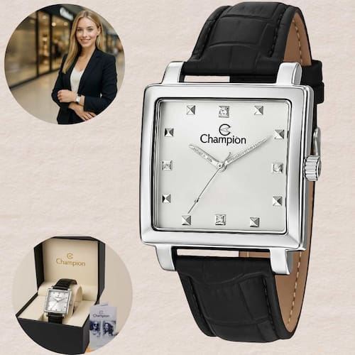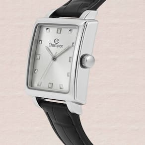 O Relógio Champion Feminino CN28106Q combina design sofisticado e praticidade para o dia a dia. Com caixa quadrada em aço prateado e mostrador prata, oferece estilo discreto e elegante. A pulseira preta em couro oference conforto no uso prolongado, enquanto o vidro de cristal mineral proporciona maior durabilidade. Resistente à água até 30 metros, é um acessório versátil para ocasiões casuais e sociais. Uma escolha clássica para quem valoriza charme e confiança.