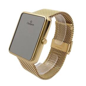Características Formato do Relógio: Retangular Composição do Vidro: Cristal mineral Material da Caixa: Metal Cor da Caixa: Dourado Cor do mostrador: Digital, Espelhado Material da Pulseira: Aço Inox Cor da Pulseira: Dourado Mecanismo: Digital