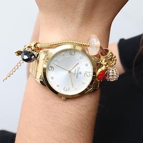 Características Composição do vidro: cristal mineral Material da caixa: metal Material da pulseira: aço inox Modelo : analógico Mecanismo: quartz Alimentação: bateria Resistência à água: 5atm Diâmetro da caixa: 4,0cm