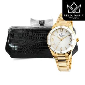 Relógio Champion Feminino Dourado CN24306G Relógio Champion feminino, analógico, redondo, dourado, com caixa e pulseira em aço. Possui o mostrador prateado com números árabes e pedras brilhantes. Aro branco com números romanos. Resistente à água em até 50 metros. Acompanha uma belíssima bolsa Clutch de festa preta, ideal para presentear. Tamanho médio 3,4 cm . Champion Elegance CN24306G Analógico Movimento: Quartz Gênero: Feminino Visor: Prata Vidro: Cristal mineral Diâmetro da caixa: 34 mm Altura da caixa: 9 mm Pressão: 50 m Fundo: Rosqueado Característica: Caixa e pulseira em aço com banho dourado. Fecho dobrável com dois botões. Tamanho aproximado da bolsa: 25 de largura, 12 de altura sem fecho e 5 de profundidade. : 1 ano Acompanha caixa da marca, manual de instruções e certificado de .