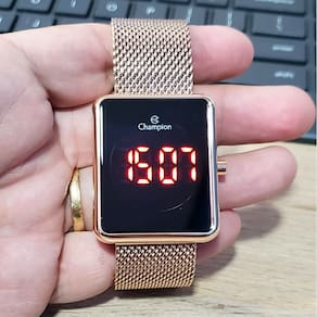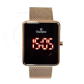 Marca: Champion Modelo: CH40080P Tipo de relógio: Digital Gênero: Feminino Cor da caixa: Dourado Cor da pulseira: Dourado Estilo: Casual Alarme: Não Cronômetro: Não Calendário: Sim Luz: Sim Resistência à água: Sim – 3 ATM = 30 metros Tipo de fecho: Fivela de gancho Material da Caixa: Aço Inoxidável Material da Pulseira: Mesh de Aço Inoxidável Características do vidro: Vidro Mineral Tamanho da caixa: 43 mm Espessura da caixa: 10 mm Comprimento da pulseira: 23 cm Largura da pulseira: 23 mm Tampa do fundo: Rosqueado Peso: 122 Gramas Alimentação: Bateria Garantia do Fabricante: 12 meses Fabricante: Magnum Indústria da Amazônia S/A