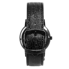 Características Formato do Relógio: Redondo Composição do Vidro: Cristal mineral Material da Caixa: Metal Cor da Caixa: Preto Cor do mostrador: Preto Material da Pulseira: Couro Cor da Pulseira: Preto Mecanismo: Analógico Quartz