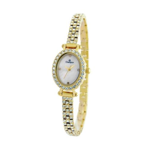 Relógio Champion Feminino Ref: Cf24822h Oval Bracelete Dourado DESCRIÇÃO DO PRODUTO: Caixa Em Metal Pulseira Em Metal Estilo Bracelete Vidro de Cristal Mineral Fundo Resistente à Água 3 Atm Diâmetro / Largura da Caixa: 19.00 MM x 24.00 MM Funções: Analógico Mostrador Estilo Madreperola Branca com pedras Aro externo com pedras Alimentação do Maquinário: Bateria de 1 Ano Marca: Não Informado Ean: 7891511435848