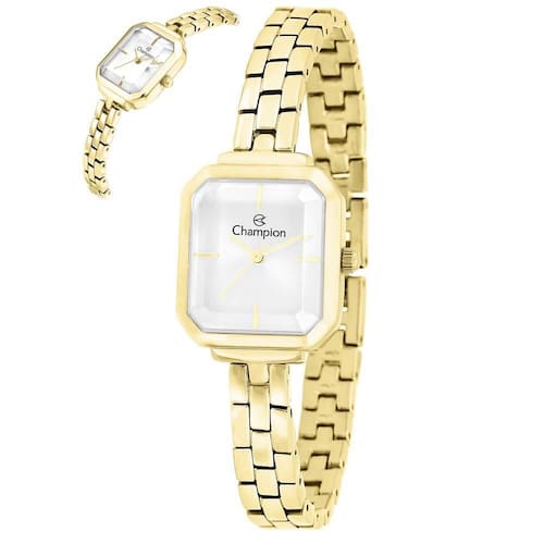 Relógio Champion Feminino Ref: Cf24895h Retangular Dourado DESCRIÇÃO DO PRODUTO: Caixa Em Metal Pulseira Em Metal Vidro de Cristal Mineral Fundo Resistente à Água 3 Atm Diâmetro / Largura da Caixa: 22.00 MM x 28.00 MM Funções: Analógico Mostrador Prateado Alimentação do Maquinário Bateria de 1 Ano Marca: Não Informado