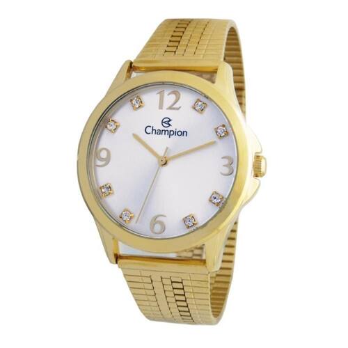 Relógio Champion Feminino Ref: Cn21265h Casual Dourado DESCRIÇÃO DO PRODUTO: Caixa Em Metal Pulseira Em Aço Vidro de Cristal Mineral Fundo Rosqueado Resistente à Água 5 Atm Diâmetro / Largura da Caixa: 38.00 MM Funções: Analógico Mostrador Prateado com números e pedras Alimentação do Maquinário: Bateria de 1 Ano Marca: Não Informado Ean: 7891511431789