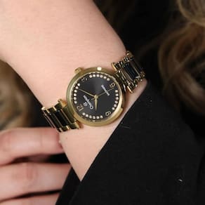 Pulseira de Aço Inoxidável com detalhes em cerâmica preta
