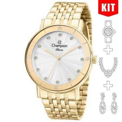 Características Formato do Relógio: Redondo Composição do Vidro: Cristal mineral Material da Caixa: Metal Cor da Caixa: dourado Cor do mostrador: branco Material da Pulseira: Aço Inox Cor da Pulseira: dourado Mecanismo: Analógico Quartz