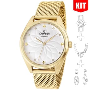 Relógio CHAMPION KIT feminino dourado esteira CN26993E