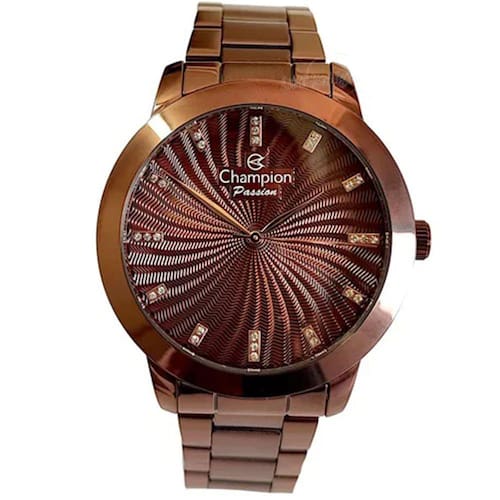 Características Formato do Relógio: Redondo Composição do Vidro: Cristal mineral Material da Caixa: Aço Inox Cor da Caixa: Marrom Cor do mostrador: Marrom Material da Pulseira: Aço Inox Cor da Pulseira: Marrom Mecanismo: Analógico Quartz