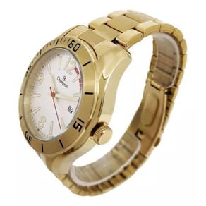 Características - Composição do Vidro: Cristal Mineral - Material da Caixa: Metal - Cor da Caixa: Dourado - Material da Pulseira: Aço Inox - Cor da Pulseira: Dourado