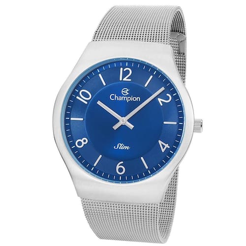 Relógio Champion Masculino Ref: Ca21848f Slim Prateado DESCRIÇÃO DO PRODUTO: Caixa Em Aço Pulseira Em Aço Vidro de Cristal Mineral Fundo Rosqueado Resistente à Água 5 Atm Diâmetro / Largura da Caixa: 41.00 MM Altura da Caixa: 7.00 MM Funções: Analógico, Slim Mostrador Azul com números Alimentação do maquinário: Bateria de 1 Ano Marca: Não Informado