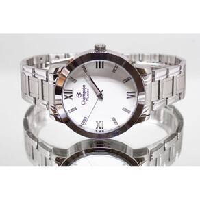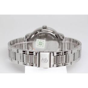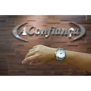 Características Formato do Relógio: Redondo Composição do Vidro: Cristal mineral Material da Caixa: Metal Cor da Caixa: Branco, Prata Cor do mostrador: Branco Material da Pulseira: Aço Inox Cor da Pulseira: Prata Mecanismo: Analógico Quartz