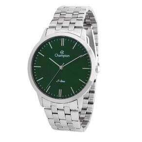 Relógio Champion Masculino Prateado Slim Fino Verde Cn21103G