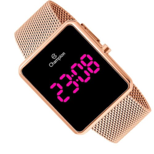 Relogio Champion Rose Quadrado Digital Led Rosa Ch40080h