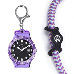 - Gancho para pendrar o relógio onde quiser (com base lilás metálico)