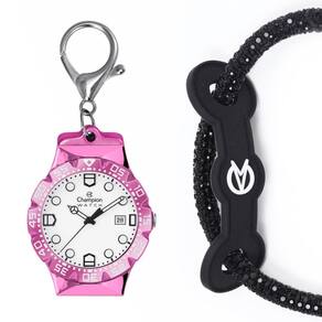 - Gancho para pendrar o relógio onde quiser (com base rosa metálico)