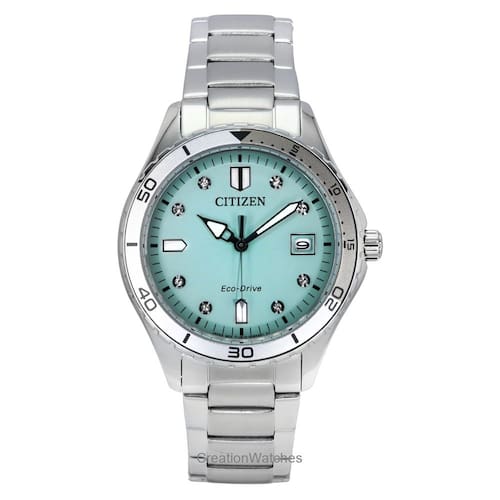 Relógio feminino Citizen Marine Eco-Drive em aço inoxidável com mostrador verde FE6170-88L 100M