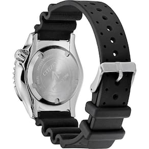 Caixa de Aço Inoxidável Pulseira de Poliuretano Preta Vidro de Cristal Mineral Fundo Rosqueado Resistente à Água 20 Atm 200 m Diâmetro / Largura da Caixa: 42.00 Mm Funções: Analógico, Calendário Duplo com opção em inglês e espanhol , Automático Estilo: Diver Mergulhador Linha: Promaster Referência Internacional: Ny0086-16l Alimentação do maquinário: Mecânico Automático Mostrador Azul Coroa com Escotilha Aro Azul com Detalhe em Vermelho