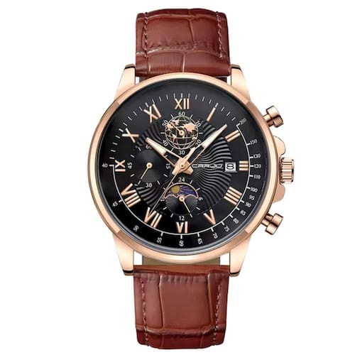 Combine sofisticação e ousadia com este elegante relógio masculino clássico, projetado para impressionar com seu estilo atemporal e detalhes sofisticados. Ideal para o homem moderno que aprecia um toque de distinção em seu acessório diário.