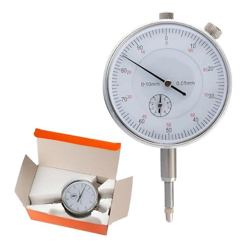 Características: - produto de qualidade superior à concorrência - testado por engenheiros - ponto de contato em aço inoxidável - haste cromada dura, terra de precisão e dobrada - construção resistente a impactos - estrutura simples, fácil de usar e manter - alta sensibilidade, estável e confiável na precisão - utilizado para medir o runout do eixo, pressão do eixo, folga da engrenagem, runout da face do volante, concentricidade do alojamento do volante e concentricidade do assento da válvula Especificações: - marca: bight - curso total: aprox. 11mm - material: metal - faixa de medição - escala: 0-10mm - precisão da medida: 0.01mm - diâmetro do visor: 55mm - circunferência do relógio aproximadamente 19cm O pacote contém: - 01 relógio comparador analógico na caixa como na imagem para guardar com proteção e segurança. Marca: Não Informado