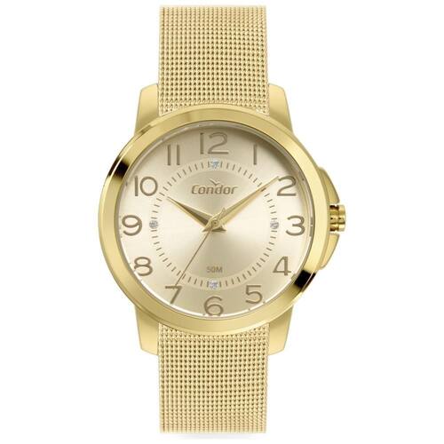 Relógio Condor Feminino Ref: Co2035nbd/4x Casual Mesh Dourado DESCRIÇÃO DO PRODUTO: Caixa de Metal Pulseira de Malha de Aço Mesh Vidro de Cristal Mineral Fundo Pressão Resistente à Água 5 Atm Diâmetro / Largura da Caixa: 38.00 MM Alimentação do Maquinário: Bateria Maquina Japonesa Mostrador Dourado com todos os números e pedras de 1 Ano Marca: Não Informado