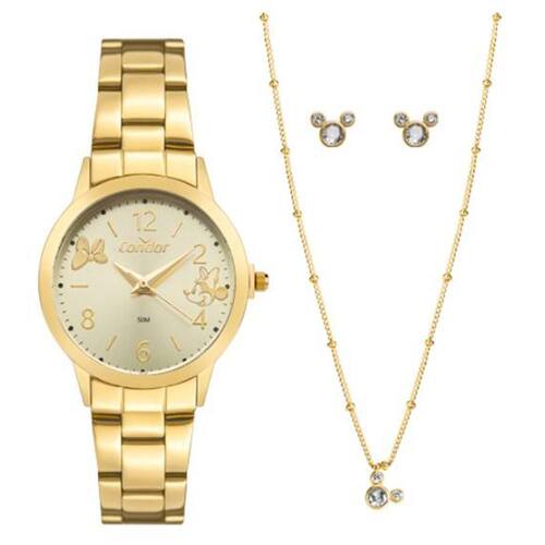 Relógio condor feminino ref: co2035ngp/ki4x dourado minnie + semijoia Descrição do produto: Caixa de metal Pulseira de aço Vidro de cristal mineral Fundo pressão Resistente à água 5 atm Diâmetro / largura da caixa: 30.00 mm