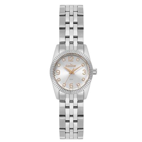 Relógio Condor Feminino Ref: Co2035nji/4k Social Prateado DESCRIÇÃO DO PRODUTO: Caixa de Metal Pulseira de Aço Vidro de Cristal Mineral Fundo Pressão Resistente à Água 5 Atm Diâmetro / Largura da Caixa: 25.00 MM Alimentação do Maquinário: Bateria Maquina Japonesa Mostrador Prateado com numeros e pedras de 1 Ano Marca: Não Informado