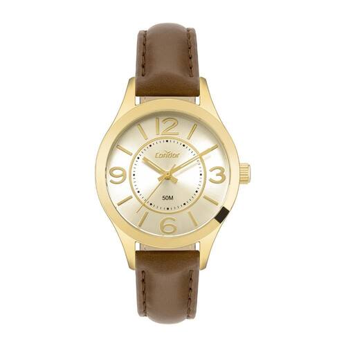 Relógio Condor Feminino Ref: Co2035nlf/5m Casual Dourado DESCRIÇÃO DO PRODUTO: Caixa de Metal Pulseira de Couro Ecológico Marrom Vidro de Cristal Mineral Fundo Pressão Resistente à Água 5 Atm Diâmetro / Largura da Caixa: 35.00 MM