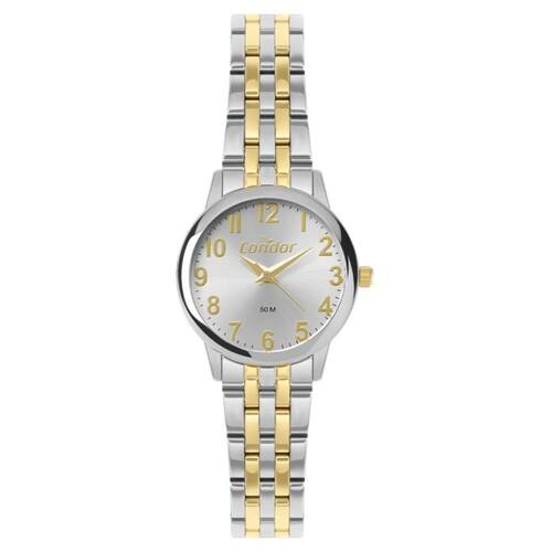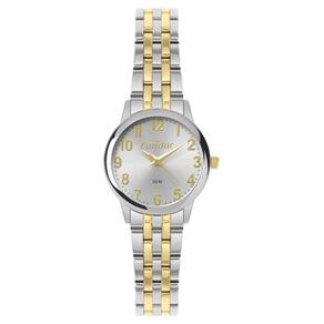 Relógio Condor Feminino Ref: Co2035nov/4k Casual Bicolor DESCRIÇÃO DO PRODUTO: Caixa de Metal Pulseira de Aço Vidro de Cristal Mineral Fundo Pressão Resistente à Água 5 Atm Diâmetro / Largura da Caixa: 29.00 MM Alimentação do Maquinário: Bateria Maquina Japonesa Mostrador Prateado com todos os numeros Prateado com Dourado de 1 Ano Marca: Não Informado