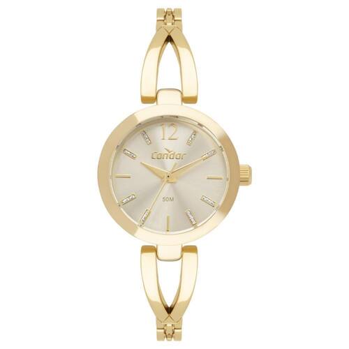 Relógio Condor Feminino Ref: Co2035nqf/5x Bracelete Dourado DESCRIÇÃO DO PRODUTO: Caixa de Metal Pulseira de Metal Estilo Bracelete Vidro de Cristal Mineral Fundo Pressão Resistente à Água 5 Atm Diâmetro / Largura da Caixa: 26.00 MM Alimentação do Maquinário: Bateria Maquina Japonesa Mostrador Dourado com numero e pedras de 1 Ano