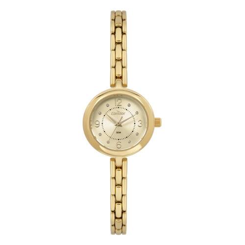 Relógio Condor Feminino Ref: Co2035nsd/5x Bracelete Dourado DESCRIÇÃO DO PRODUTO: Caixa de Metal Pulseira de Metal Estilo Bracelete Vidro de Cristal Mineral Fundo Pressão Resistente à Água 5 Atm Diâmetro / Largura da Caixa: 25.00 MM Alimentação do Maquinário: Bateria Maquina Japonesa Mostrador Dourado com numeros e pedras de 1 Ano