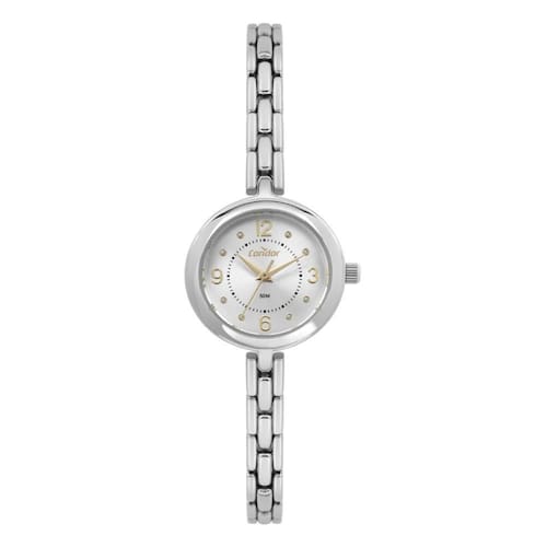 Relógio Condor Feminino Ref: Co2035nse/5k Bracelete Prateado DESCRIÇÃO DO PRODUTO: Caixa de Metal Pulseira de Metal Estilo Bracelete Vidro de Cristal Mineral Fundo Pressão Resistente à Água 5 Atm Diâmetro / Largura da Caixa: 25.00 MM Alimentação do Maquinário: Bateria Maquina Japonesa Mostrador Prateado com numeros e pedras de 1 Ano